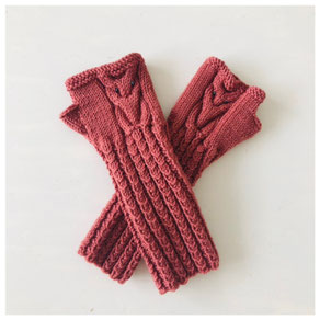 Armstulpen ziegelrot mit feinem Zopf und Spitze